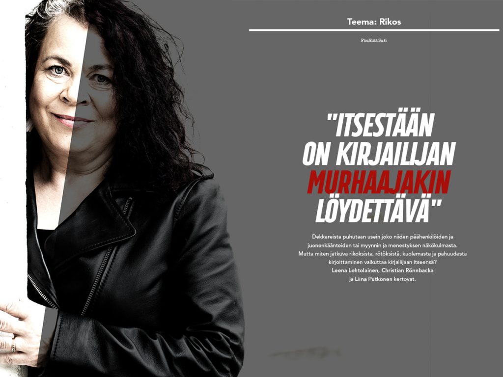 – En edes halua autenttisuutta. En halua, että kirjojeni rikokset voisivat olla totta. Voin tässä julkisesti luvata, etten tule ikinä kirjoittamaan yhtään true crime -kirjaa. Sille pahuudelle en halua altistua.