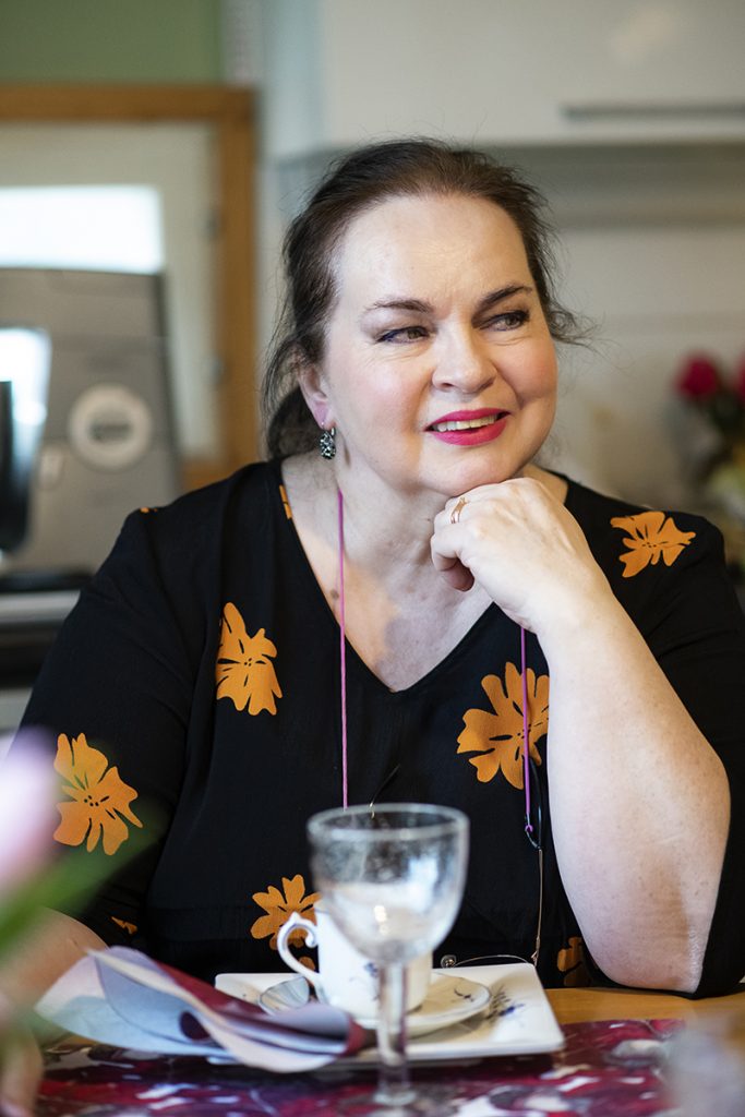 – Ruoan valmistus ja siitä nauttiminen kertoo jotakin uutta hahmoista tai jotain olennaista koko tarinan kannalta, ja tietenkin se mahdollistaa myös ihmisten välisen kommunikaation. Välillä kirjoissani on pitkiäkin jaksoja, joissa istutaan ruokapöydässä, mutta niissä toiminta tulee siitä, että pöytään tuodaan uusi ruokalaji joka muuttaa dynamiikkaa tai nostaa esiin uusia teemoja.