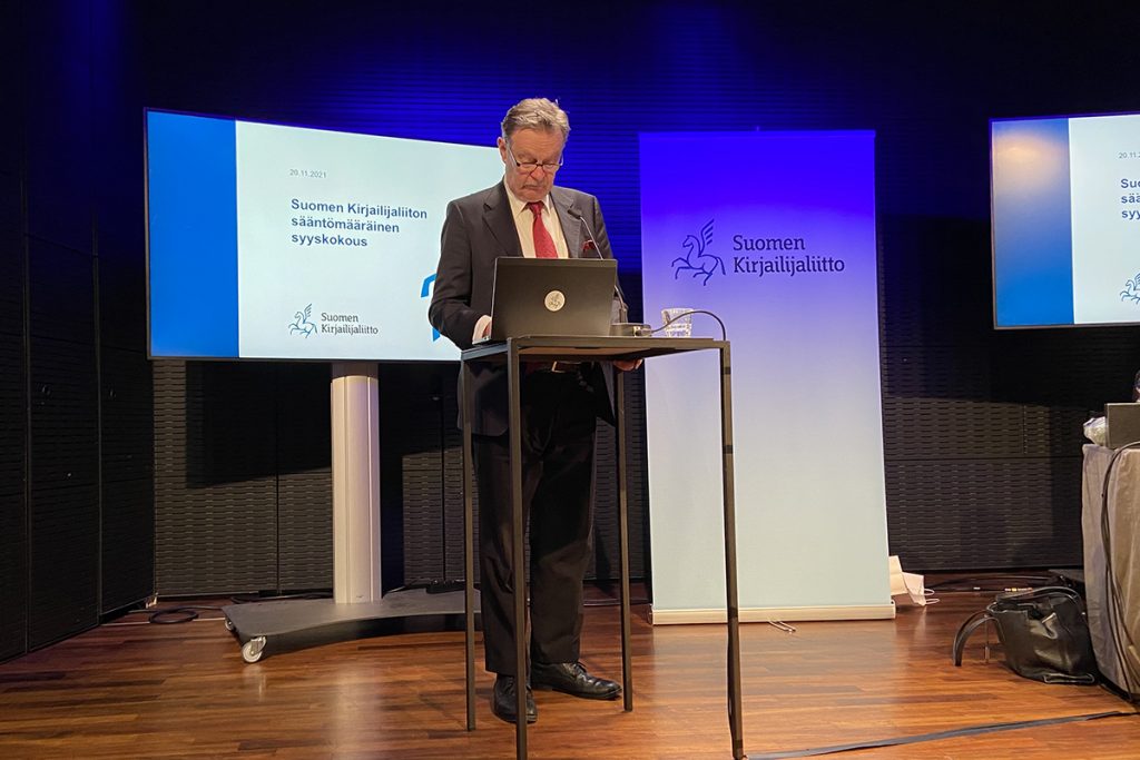 Huomionosoitus panee myös miettimään, mitä liittomme jäsenyys ylipäätänsä on. Pääsin Suomen Kirjailijaliiton jäseneksi vuonna 1986, reippaasti heti toisella yrittämällä. Jäsenyys on sitoutumalla tapahtuvaa vapautumista monista työssään yksinäistä kirjailijaa vaivaavista ongelmista. Jäsenyys on kirjailijan emansipoitumista itseään vahvemmista vaikuttajista. Kirjailijaliitossa päätöksiä tekevät kirjailijat, eivät esimerkiksi kriitikot, ei lehdistö saati kustantajat eivätkä – Herra paratkoon – etenkään kirjakauppiaat ja kirjakauppaketjut.