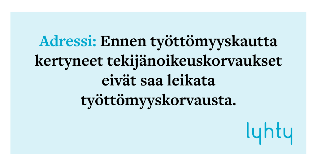 Ennen työttömyyskautta kertyneet tekijänoikeuskorvaukset eivät saa leikata työttömyyskorvausta