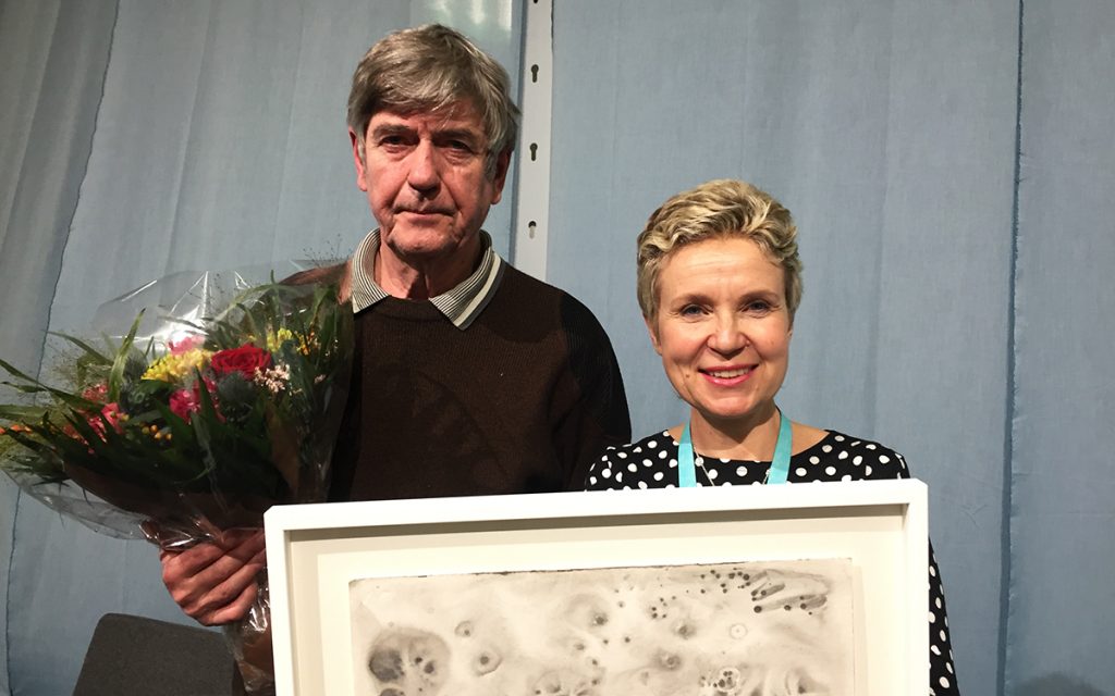 Erkki Kiviniemi ja Kirjailijaliiton puheenjohtaja Sirpa Kähkönen