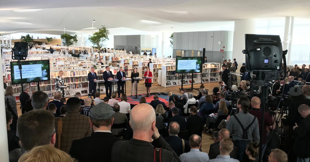 Hallitusneuvottelujen tuloksena valmistunut hallitusohjelma julkaistiin maanantaina 3.6. keskustakirjasto Oodissa järjestetyssä tilaisuudessa.